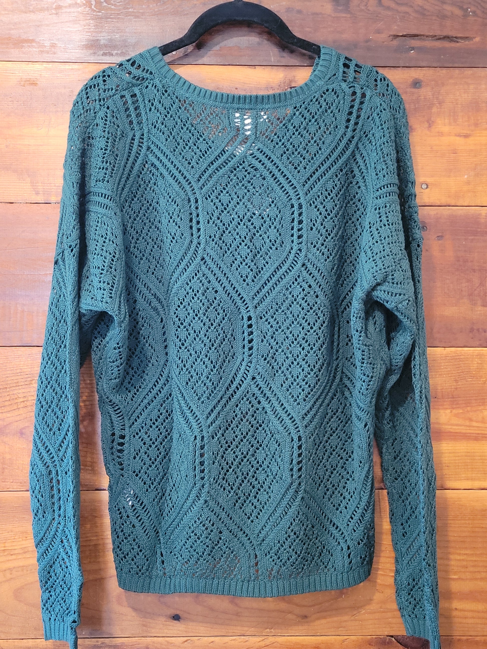 This jade green dolman sweater is a playful layering piece with its lightweight, open-knit pointelle design. The soft cotton-viscose blend feels comfy and breathable, perfect over your favorite camis or long sleeves. With a flattering V-neckline, drop shoulders, and a ribbed hemline, it adds a polished touch to any outfit. Dress it up with work pants or keep it casual with denim or cropped jeans — effortless style, every time!