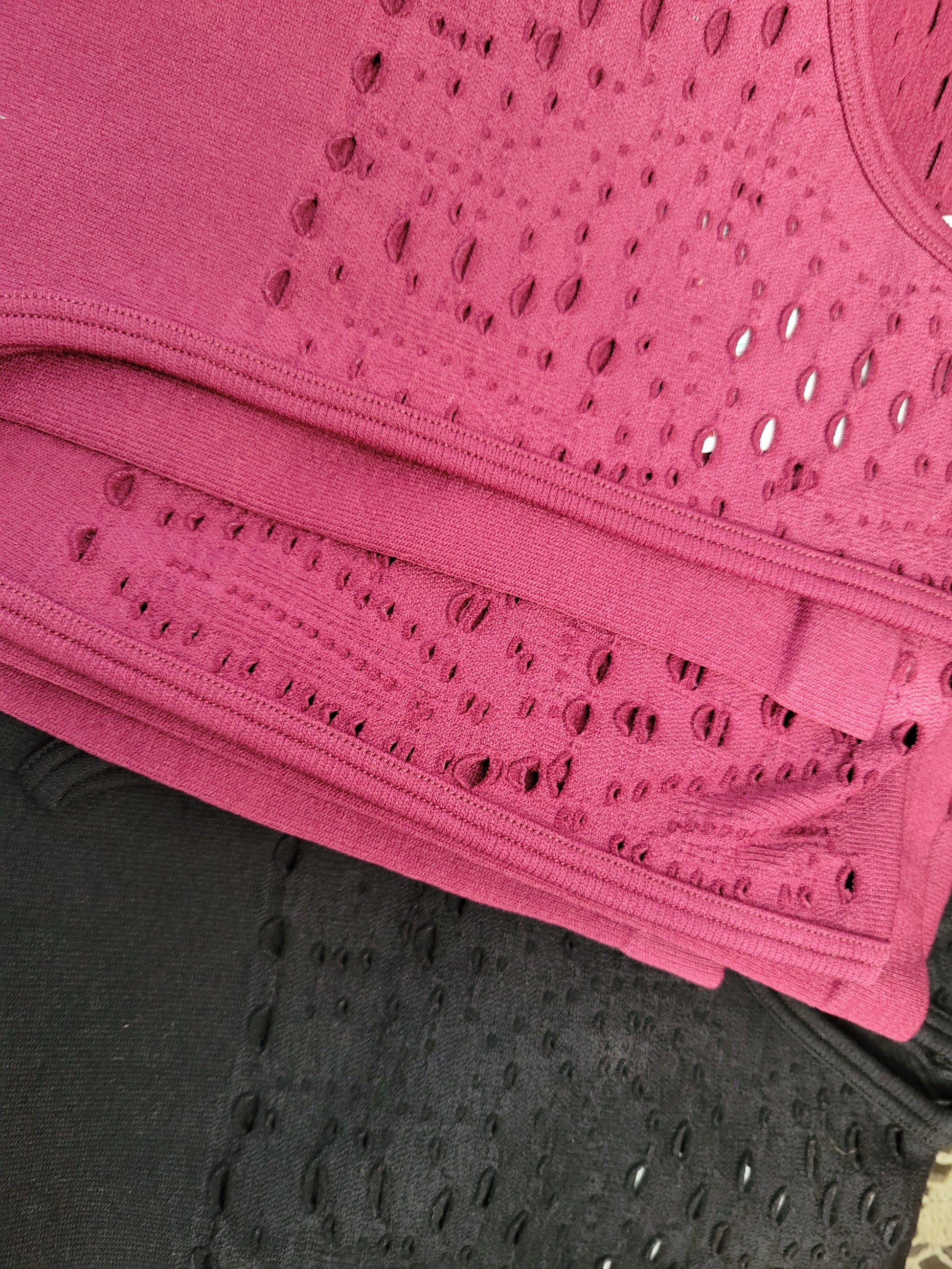 This sleek black tank top features a higher crew neck and a seamless design for unbeatable comfort and stretch. The playful cut-out details across the front and back add a bold twist to your outfit. Perfect as a standout layer under jackets or cardis at work, or styled solo with your favorite jeans or shorts for a casual-chic vibe. Made from a soft blend of 95% nylon and 5% spandex, it moves with you all day long.