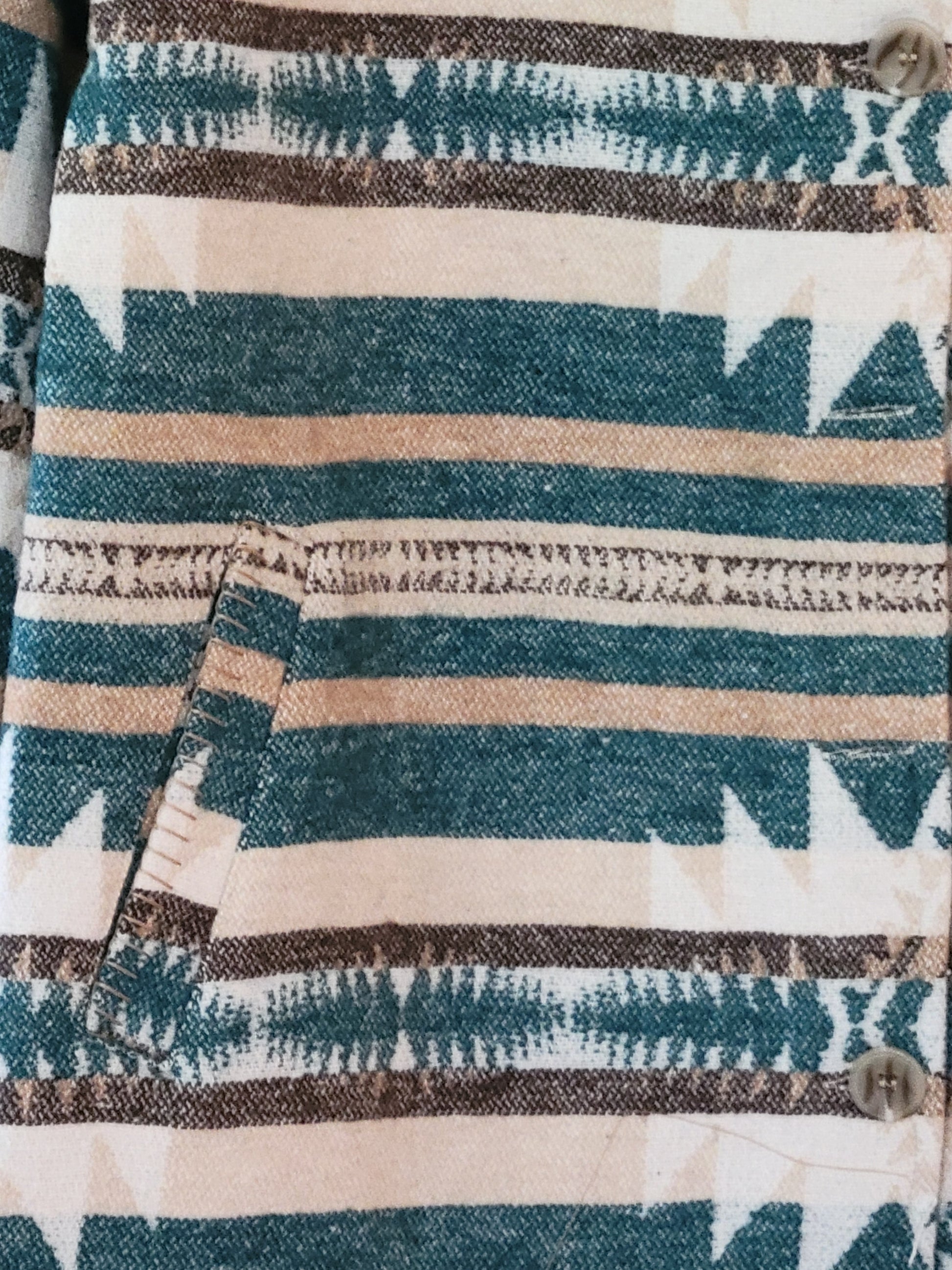 Wrap yourself in cozy charm with this turquoise jacket featuring blanket stitching on the front and back western yoke. Perfect for fall adventures or those cool nights any time of the year, it brings warmth and a splash of vibrant style to your wardrobe. Ready to turn heads and keep you comfy? This jacket’s got you covered!