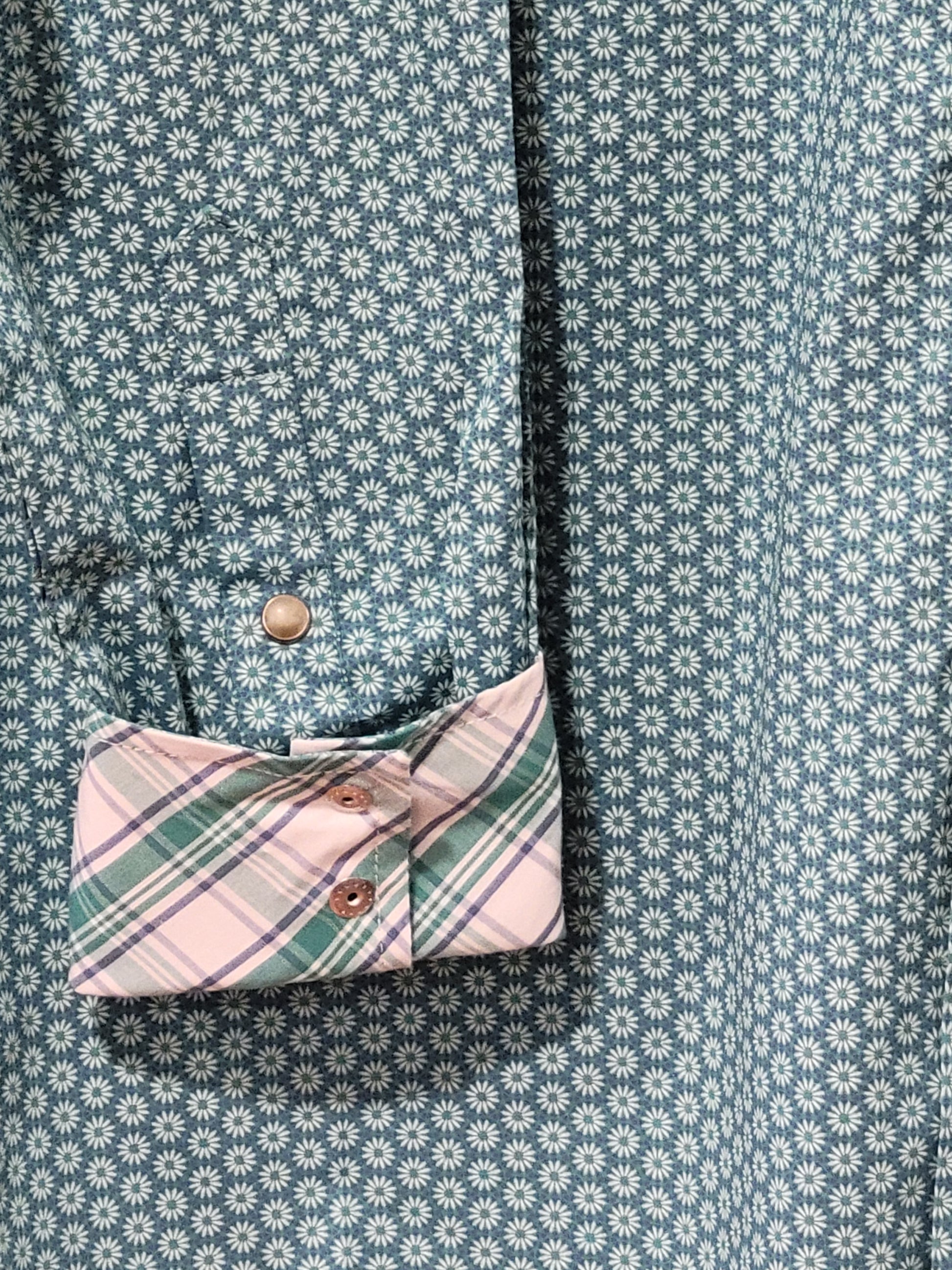 Saddle up in timeless Western style with the Wrangler® George Strait Collection Troubadour shirt. Crafted from a breathable 98% cotton and 2% spandex blend, this teal long sleeve features authentic Western details: hidden buttondown collar, yoked shoulders, and snap-closure flap pockets for that classic cowboy look. Three-snap cuffs and full snap front keep things practical and period-perfect. Whether you're heading to the honky-tonk or just channeling your inner outlaw, this Spring 2026 essential delivers heritage charm with modern comfort.